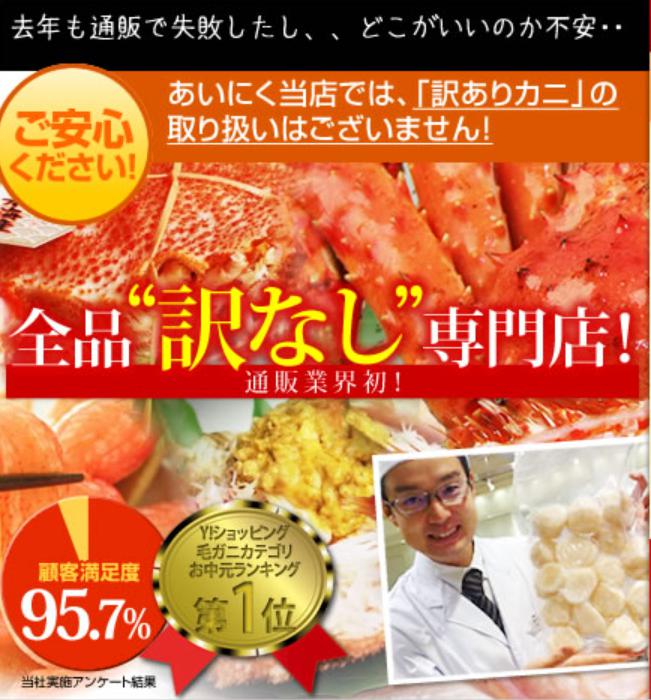 良い口コミ・評判としては、「何度購入してもハズレがなく、安定した品質」・「Yahoo!ショッピングでランキング1位も納得の味」など、やはり、北海道産の本ズワイガニや毛ガニのみを厳選しているだけあって、蟹の品位に満足しているといった声が多かったです。